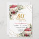 Red blush roses 80th birthday invitation with gold