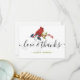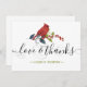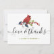 Envoyez une note de remerciements à votre famille et à vos amis pour leurs cadeaux de vacances. Cet élégant modèle design présente un cardinal rouge perché sur une branche avec des feuilles verts et des baies rouges. Ci-dessous, dans une typographie de script à la main moderne, il dit "Amour & Merci" avec votre nom monogrammé pour personnaliser. Le dos de la carte contient un message customisé avec votre signature. Merci beaucoup !
