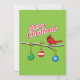 La caricature d'un cardinal bird standing on a Christmas bar of a tree. The branch is covered by snow and decorated by Christmas baubles ornaments. The design is completed by a Merry Christmas caption.