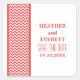 Chevron Border chic et moderne Enregistrer les stickers Date avec une simple bordure motif chevron en rouge et blanc. Ce design élégant donnera le ton à un mariage élégant. Facile à customiser, il suffit d'ajouter les détails de votre mariage dans les champs de texte fournis. Cliquez sur "Customiser" pour trouver d'autres options de personnalisation.