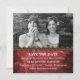 Chic Steampunk Photo originale et décalée Enregistrer la date Annonce avec un motif d'engrenage en rouge foncé et un art numérique motif à dents en arrière - plan plat en brun foncé. Ce design alternatif serait parfait pour annoncer un mariage à thème steampunk vintage ! Facile à customiser, ajoutez simplement vos détails de mariage et une photo pour faire de ce design votre propre. Cliquez sur "Customiser" pour trouver d'autres options de personnalisation.