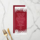Un menu romantique mariage rendra votre journée de mariage plus spéciale et unique. Conception customisée, texte et photos imprimés sur papier de base. Vous pouvez choisir votre propre texte, polices et différents types de papiers. Parfait pour votre jour de mariage, douche nuptiale, événement ou fête. Surprenez vos invités avec un menu différent, charmant et unique