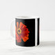 Une tasse avec la photo d'une fleur de marguerite rouge contre un arrière - plan noir