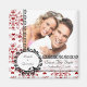 Annoncez votre futur mariage avec notre photo Save The Date Annonce Magnet avec un beau lustre rouge damassé arrière - plan avec cadre en feuilles noires avec 2 inséparables. Ajoutez simplement vos informations de mariage et votre photo et vous êtes tous prêts à partir ! Correspondance des timbres-poste et des scellés d'enveloppe disponibles dans notre boutique