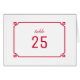 Carte simple et minimaliste Déco Chic Table Number avec une bordure ornementale moderne art rouge. Cette carte de table classique et élégante est facile à customiser avec vos détails mariages. Pour plus d'options de personnalisation, cliquez sur Personnaliser.