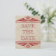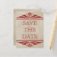 Élégant et chic Elegant Deco Save the Date Carte postale avec une paire de bordures d'art déco tourbillonnante fleurissent en rouge foncé et un look vintage texturé arrière - plan dans un beige doux. Cela sauve la carte postale date a un charme rustique tout en maintenant une agréable atmosphère sophistiquée. Parfait pour un mariage à thème vintage art déco des années 1920. Facile à customiser, il suffit d'ajouter les détails de votre mariage dans les champs de texte fournis. Cliquez sur "Customiser" pour trouver d'autres options de personnalisation comme changer de polices ou de couleurs de texte.