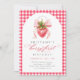 Célébrez son premier anniversaire de baies avec cette invitation en vichy rouge sucrée avec des fraises d'aquarelle, un arc coquette rose et un script élégant. Le charmant motif de style pique-nique apporte une touche intemporelle et joyeuse, parfaite pour une fête de 1er anniversaire chère remplie d'amour, de rire et de petites baies rouges.
