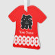 Cet ornement suspendu est un manteau de bonheur rouge classique, une veste extérieure portée pour les festivals au Japon. Le caractère kanji japonais "matsuri", qui signifie "festival", apparaît en noir avec un contour blanc, et un motif de chaîne imbriqué apparaît en blanc le long du fond. Entre les deux est un espace pour ajouter votre propre nom, ou vous pouvez supprimer le texte pour seulement le simple motif de manteau heureux.