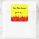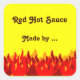 Un étiquette de conserve personnalisé pour les sauces chaudes, les ragoûts, la salsa ou d'autres recettes chaudes enflammées avec l'art graphique des flammes rouge et orange au fond du design. Un autre original de MomsRetro.