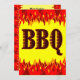 Une fête d'anniversaire personnalisée ou une invitation au barbecue avec des flammes rouges et oranges lisant le barbecue à l'avant et de la place pour du texte personnalisé en lettres occidentales à l'arrière. Cliquez sur Customiser pour modifier les polices, la taille de l'invitation, les couleurs arrière - plans, ajouter ou supprimer du texte et plus encore, enregistrez même votre conception pour plus tard.