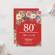 Red Floral 80th Birthday Invitation for Women. Fleur florale aquarelle. Arrière - plan rouge. Rose, Jaune, Orange, Fleur Violette. Anniversaire adulte. 13ème 15ème 16ème 18ème 20ème 21ème 30ème 40ème 50ème 60ème 70ème 80ème 90ème 100ème, tout âge. Pour plus de personnalisation, cliquez sur le bouton "Customiser" et utilisez notre outil de conception pour modifier ce modèle.