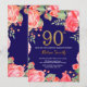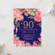 Red Floral 90th Birthday Invitation for Women. Aquarelle Fleurie Botanique. Parties scintillant or. Arrière - plan bleu marine. Pies Roses Fleurs Florales. Anniversaire adulte. Pour plus de personnalisation, cliquez sur le bouton "Customiser" et utilisez notre outil de conception pour modifier ce modèle.
