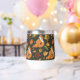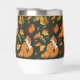 Un renard rouge avec des citrouilles, des glands et des feuilles d'automne dans un fond vert foncé