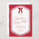 Celebrate a Galentine’s girls’ party with this charming invitation. It features a whimsical frame and a satin watercolor bow on a red background, with a beautiful script font paired with a modern typeface. It’s perfect for your girly celebration. 💕