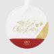 Célébrez la saison avec cet élégant ornement photo de Noël. Ce design présente des lettres dorées modernes "My First Christmas" avec des blocs de couleurs géométriques (rouge et blanc). Vous pouvez ajouter votre photo et personnaliser le texte. Plus de cadeaux de vacances et de cartes sont disponibles dans ma boutique BaraBomDesign.