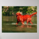 Red Golden Retriever Runin Water Poster