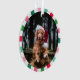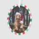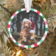 Ornement animal de compagnie pour Noël avec la photo de votre chien à l'intérieur d'un cadre rayé d'entrée en blanc, rose, et différentes nuances de vert. Ajoutez le nom et l'année à l'arrière sous un empreinte de patte.