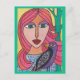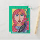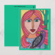 Portrait abstrait et vif de femme sur 4,25 po x 5,5 po mat, stock de carte poids lourd avec finition en coquille d'oeuf.