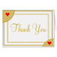 Merci or élégant script contre arrière - plan blanc. Cadre géométrique double or couleur or avec petits coeurs rouges sur les angles à faux volets. Personnalisez l'arrière avec les initiales de mariée et de champignon monogrammes. Entrez un message de remerciement spécial pour chaque carte et ajoutez-les séparément au panier. Ou, supprimer le texte pour laisser vide à l'intérieur pour écrire à la main votre propre photo spécial merci pour une touche personnelle. Design original par TamiraZDesigns.