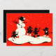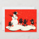 On dirait que ces petits Krampus s'amusent. Cette impression de Krampus représente une bataille de boules de neige entre Krampus et un bonhomme de neige.