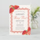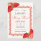 The back of the invitation is just as stunning as the front, mirroring the same lace border and strawberry accents, but instead of text, it holds a photo of child. This creates a cohesive, high-end feel where little child’s portrait is beautifully framed like a piece of art.