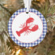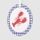 Red Lobster sur carreaux de buffle bleu et blanc. ENDROIT personnalisé, ANNÉE en noir au dos. Thème côtier idéal pour TOUT voyage, événement, réunion de famille, cadeau de fête. Coloré, Prépa, Amusant. Mélangez et associez toute la collection Homard / Fête de TMCdesigns.