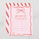 Make your celebration extra fun with this red and pink hand drawn bow Where Were They game, perfect for a Christmas bridal shower, winter wedding shower, or festive holiday celebration. A sweet activity for a merry little bridal shower, this game blends playful questions with cute seasonal charm. Ideal for winter brides, cozy gatherings, and holiday-inspired parties looking for a cheerful, bow-themed touch.