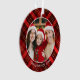 A classic red plaid tartan pattern behind your holiday family photograph for a festive, traditional Christmas ornament. Simple and beautiful double sided photo Christmas gift.