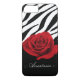 Élégant et élégant coque iPhone 6 floral conçu avec une belle rose rouge sur un motif zèbre rayures, et personnalisé avec votre nom ou texte personnalisé.