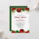 Il s'agit d'une jolie invitation à la douche nuptiale fleurie pour toute saison, y compris la saison des Fêtes d'hiver. Elle est entourée d'une bordure supérieure de roses rouges profondes, nichée au milieu de feuilles verts et d'ornements dorés. Votre texte personnalisé est en vert foncé au centre sur un arrière - plan blanc émaillé de confettis dorés. Le fond a une bordure de rose rouge correspondante. L'arrière de l'invitation est solide assorti au vert foncé.
