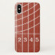 Reste dans ta voie. Ce boîtier de téléphone à thème sportif présente une illustration de style en détresse d'une ligne de départ de piste rouge. Il est parfait pour les coureurs de piste et de terrain de toutes sortes, qu’ils soient des sprinters ou des coureurs de distance, à l’intérieur ou à l’extérieur. Vous voulez le cas de téléphone parfait pour quelqu'un qui aime courir? Celui-ci gagne la course. Vous cherchez quelque chose de plus personnalisé ? Choisissez simplement PERSONNALISER pour ajouter votre propre nom ou message pour votre propre conception personnalisée. Trouvez plus de pistes de course et d'autres produits uniques dans la boutique Asterisk Designs Zazzle.