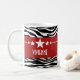 Tendance et moderne Sassy Star Zebra Mug avec un arrière - plan design en zèbre noir et blanc et une bordure rouge audacieuse ornée d'un motif étoilé amusant. Ce design girly peut être customisé avec le texte personnalisé de votre choix. Cliquez sur "Customiser" pour trouver d'autres options de personnalisation.