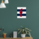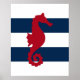 Red Seahorse sur marine & rayures blanches affiche