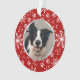 Customisez ce flocon d'hiver rouge et blanc / motif empreinte de patte avec la photo de votre animal sur le devant. Le dos a un modèle pour ajouter le nom de votre animal et un an. >>> Pour modifier la police, la taille et la couleur du texte, utilisez le bouton Personnaliser. <<< La photo de l'animal de compagnie et les modèles de texte personnalisés ont tous deux un cadre de bordure imprimé en faux argent.