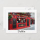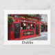 Carte postale du célèbre pub rouge avec paniers de fleurs suspendus dans le quartier de Temple Bar à Dublin, la capitale de l'Irlande avec une frontière blanche et le texte 'Dublin'.