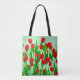 Tote bag with red tulips, a floral design bag to add the beauty of nature’s bloom to your belongings and style.