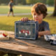 Fuel your child's imagination with this delightful watercolor toy car lunchbox! The centerpiece is a charming red vintage-style racecar, complete with a plush brown seat and the distinctive '02' marking. Set against a dark gray panel and framed by a classic navy and green plaid, this design evokes a sense of retro adventure. It's a wonderful way to carry lunch, snacks, or treasures, and the customizable name feature makes it a truly personal item for any young enthusiast. Imagine the excitement of opening this unique lunchbox each day!