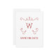 Monogramme Whimsical Flourish moderne et simple Enregistrer la carte postale Date avec un élégant motif tourbillon en rouge. Facile à customiser, il suffit d'ajouter vos informations initiales et mariages dans les champs de texte fournis. Cliquez sur "Customiser" pour trouver d'autres options de personnalisation.