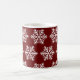Embrace cozy winter vibes with this festive coffee mug featuring a seamless white snowflake pattern on a rich red background. Perfect for sipping hot cocoa, tea, or coffee throughout the holiday season. A classic and stylish gift idea for Christmas lovers, snowflake fans, or winter décor enthusiasts.