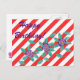 Envoyez des voeux d'anniversaire avec ces cartes postales brillantes avec des rayures en diagonale rouge et blanche superposées avec un tableau de trois fleurs violettes avec des feuilles verts. Le texte de Joyeux Anniversaire est écrit en violet et peut aussi être facilement customisé sur le formulaire modèle. Merci pour les achats CherylsArt sur Zazzle : http://www.zazzle.com/CherylsArt*/