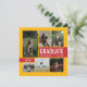 La carte de faire-part de remise de diplômes élégante et l'invitation de la fête comportent six photos senior avec "GRADUATE" comme grand point focal. Personnalisez le texte personnalisé moderne avec le nom de votre élève, l'école et l'année de classe. Cette carte recto verso comprend le libellé de l'invitation de la partie de graduation au verso. Customisez les couleurs du cadre d'image et des boîtes à l'avant et les boîtes à l'arrière pour correspondre aux couleurs de votre école ou coordonner avec la photographie. Disponible dans les combinaisons de couleurs scolaires les plus populaires et les plus courantes - vert/jaune, rouge/jaune, rouge/or, bleu/jaune, bleu/or, noir/or, violet/jaune, rouge/argent et rouge/noir. Produits correspondants et autres couleurs disponibles.