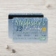 Élégant et brillant Bleu et Vert Parties scintillant Drivers | Anniversaire VIP carte de crédit Invitations avec âge personnalisé. Arrière - plan de Parties scintillant bleu étincelant à la Drip. On dirait une carte de crédit ! Invitations amusantes et uniques à la fête. ©2021 Miss Sassy Party Designs