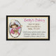 Le carte de visite lunatique d'amusement fait dans les graphiques primitifs d'un pays, montrant une fille mignonne de boulanger dans le casquette de chef ondulant hors d'un ovale a coupé le cadre. Un bon de style de coupe-circuit est du verso. Perfectionnez pour un magasin de boulangerie, le magasin de partie, ou un boulanger fait sur commande indépendant. Customisez les gisements des textes pour personnaliser pour vous-même ou votre magasin.
