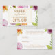 Cette Carte d'aiguillage florale de Salon de Beauté est la façon idéale de développer la clientèle de votre salon de beauté tout en récompensant vos clients fidèles. Avec un beau design floral dans les tons rose, violet et or, cette carte de référence est à la fois élégante et efficace. Il suffit de distribuer ces cartes à vos clients, et lorsqu'ils renvoient un ami, ils peuvent présenter la carte pour recevoir une remise spéciale ou une offre lors de leur prochaine visite. Utilisez l'outil de design de Zazzle pour customiser ce modèle avec l'image de marque et les coordonnées de votre salon, et commencez à attirer de nouvelles affaires dès aujourd'hui.