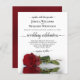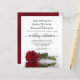 Cette faire-part de mariage est classe, élégante et belle, tout en restant abordable et abordable. Il présente un design romantique simple avec une seule rose rouge à long tige réfléchissant dans un bassin d'eau avec des vagues et des ondulations. La typographie comprend une calligraphie de script classique avec des swashes, des queues et des fioritures. Merveilleuse façon d'invitation vos amis et votre famille pour partager votre joie dans votre journée spéciale sans casser la banque.