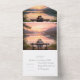 Reflets de coucher de soleil sur le lac - L'invitation tout-en-un capture la beauté et la sérénité d'un moment romantique au bord du lac. Un jeune couple est assis ensemble, contemplant un coucher de soleil doré reflété sur des eaux calmes, symbolisant l'amour, l'unité et les nouveaux départs. La lueur chaude et le paysage tranquille créent un arrière-plan intemporel pour votre jour spécial, mêlant l'élégance au charme naturel. Parfaite pour les mariages en plein air, rustiques ou de destination, cette invitation tout-en-un apporte une émotion sincère et une sophistication sans effort à votre papeterie de mariage.