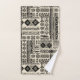 An African-inspired pattern towel set in bone white and black that adds a unique tribal element to any bathroom space.
