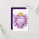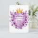 Ce modèle faire-part de mariage exquis présente une couronne d'or royale ornée de bijoux en améthyste, nichée au-dessus d'un bouclier héraldique encadré d'or. Autour du design sont luxuriantes lavande et des pivoines violettes, créant un luxueux motif floral vintage. Parfait pour des fêtes romantiques, à thème royal ou élégantes avec une touche de noblesse et de charme floral. Le bouclier vide offre de l'espace pour les noms, les dates ou les messages personnalisés.