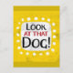 "Regardez ce chien !" est un design de texte amusant avec une forme d'accent blanc entourée de points blancs texturés.