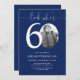 Fêtez votre 60e anniversaire avec un style intemporel en utilisant cette invitation bleu marine Look Who’s 60! Avec un design élégant et moderne, cette invitation bleue est parfaite pour ceux qui préfèrent la simplicité avec une touche d'élégance. Entièrement personnalisable, vous pouvez facilement ajouter les détails de votre fête pour créer un invitation personnel et sophistiqué qui donne le ton pour une célébration de 60ème anniversaire élégant.